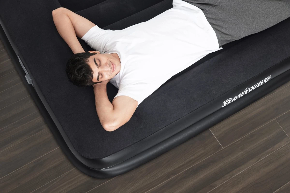 Het extra dikke bed heeft een hoogte van maar liefst 46 centimeter, wat meer comfort geeft, aangevuld met een comfortabele flocked toplaag en ingebouwd hoofdkussen. Het luchtbed is 152 centimeter breed en 203 centimeter lang; voldoende ruimte dus voor 2 personen.