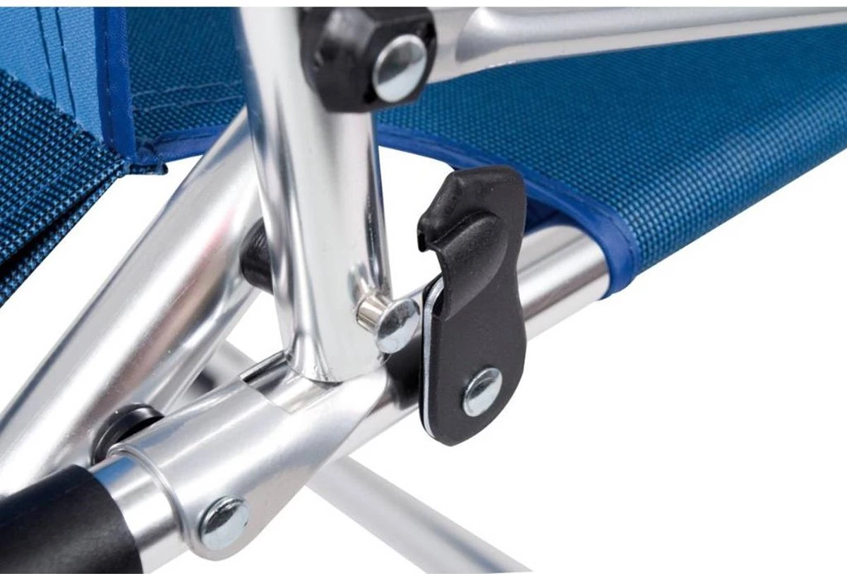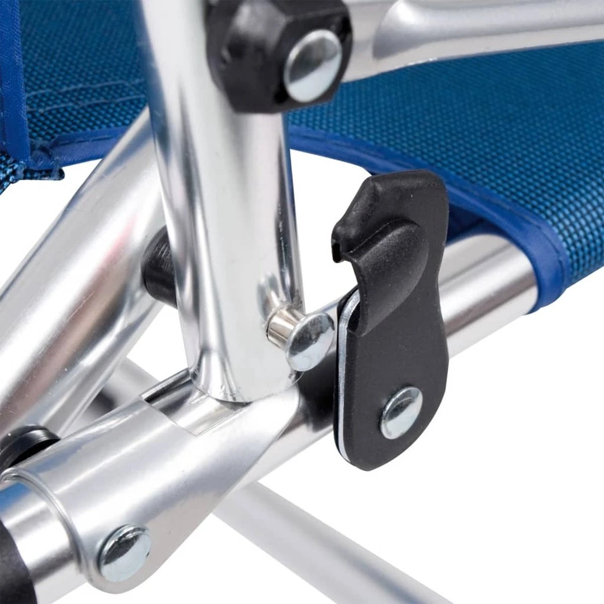 Kleur: oceaankleurig Materiaal: aluminium, 2-kleurig 600 denier polyester oxford stof Afmetingen: 54 x 60 x 90 cm (B x D x H) Afmetingen (ingeklapt): 65 x 55 x 7 cm (L x B x H) Breedte zitting: 44 cm Diepte zitting: 43 cm Hoogte zitting: 40 cm Lengte rugleuning: 55 cm Gewicht: 2,2 kg Draagvermogen: 100 kg Veiligheidsslot Met stabilisatoren