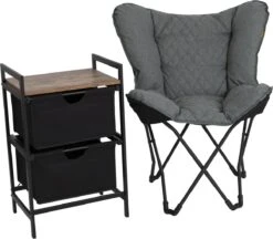 Geniet van je dag op de camping, in je tuin of in je woonkamer op deze Himrod inklapbare vlinderstoel van Bo-Camp! De kampeerstoel heeft een licht gebogen rugleuning en een gevoerde kationische zitting, zodat je lichaam comfortabel ondersteund wordt. Het stevige stalen frame draagt bij aan de stabiliteit van de stoel. De stoel kan verder gemakkelijk worden ingeklapt en in de meegeleverde draagtas worden opgeborgen. Het moderne patroon draagt bij aan het stijlvolle ontwerp. Dit product maakt deel uit van het Industrial assortiment van Bo-Camp.