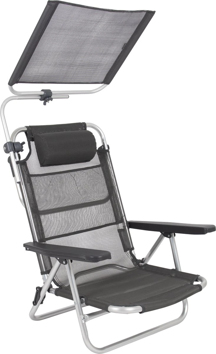 Een stijlvol zonnescherm. Deze is eenvoudig te bevestigen aan het frame van de meeste kampeerstoelen en stretchers. Daarnaast is het scherm in iedere gewenste richting te draaien.