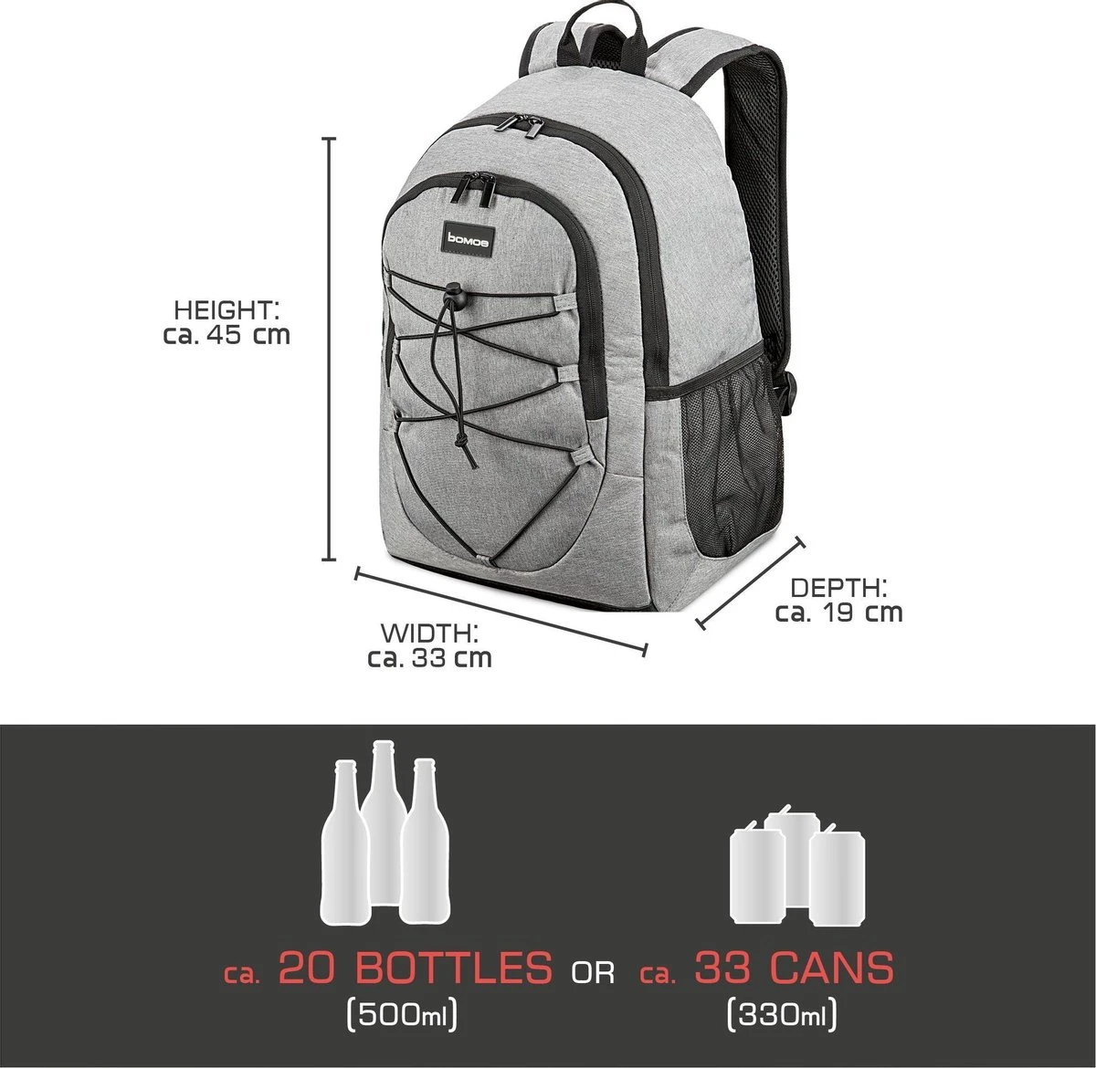 De koelrugzak heeft een volume van ca. 25 liter en is ca. 45x19x33 cm groot. De rugzak is gemaakt van ademend materiaal en heeft gewatteerde schouderbandenzodat de rugzak comfortabel is om te dragen. De rugzak houdt tot 16 uur koel en is lekvrij.
